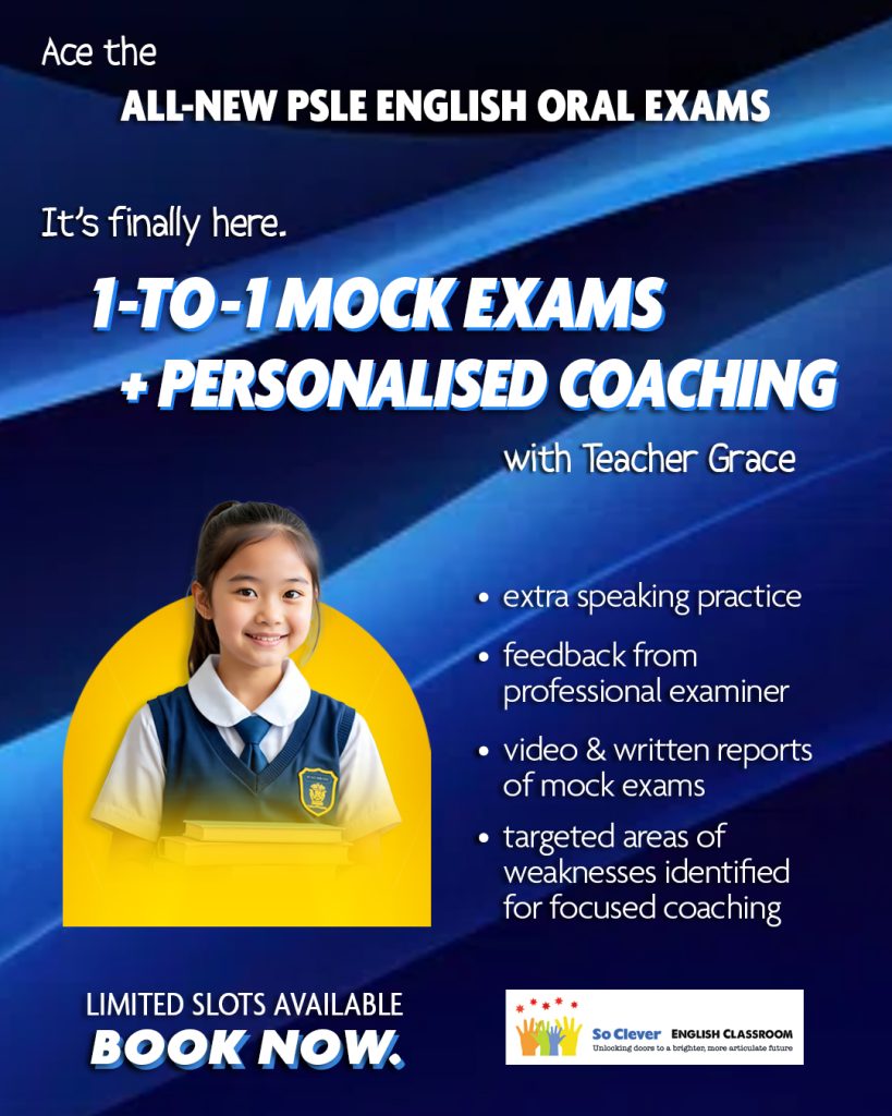 - With immediate feedback from a professional examiner – Teacher Grace, a former Cambridge-MOE Chief Presiding Examiner for the GCE O-Level English Oral Examinations